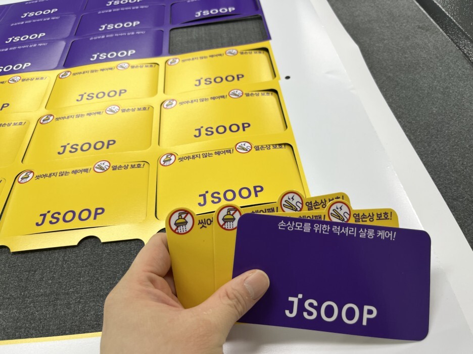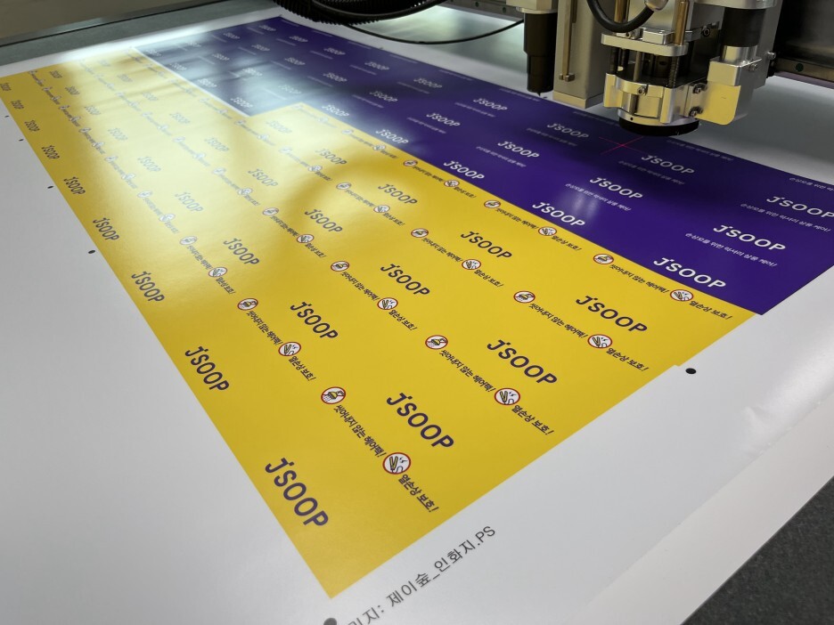 아무래도 고객의 눈에 띄어야 할 쇼카드이니만큼 정밀하게 커팅되어야 하고, 단순 네모반듯한 모양보다는 외곽 라운드도 줄 수 있고 부각되는 형태로 커팅이 된다면 더욱 눈에 띄겠죠?