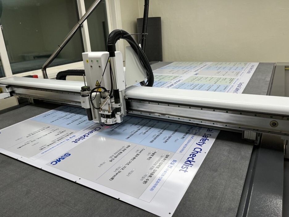 고객님께서 원하시는 사이즈가 있으셨기에 정확한 사이즈 커팅을 위해 평판커팅기를 사용하였으며