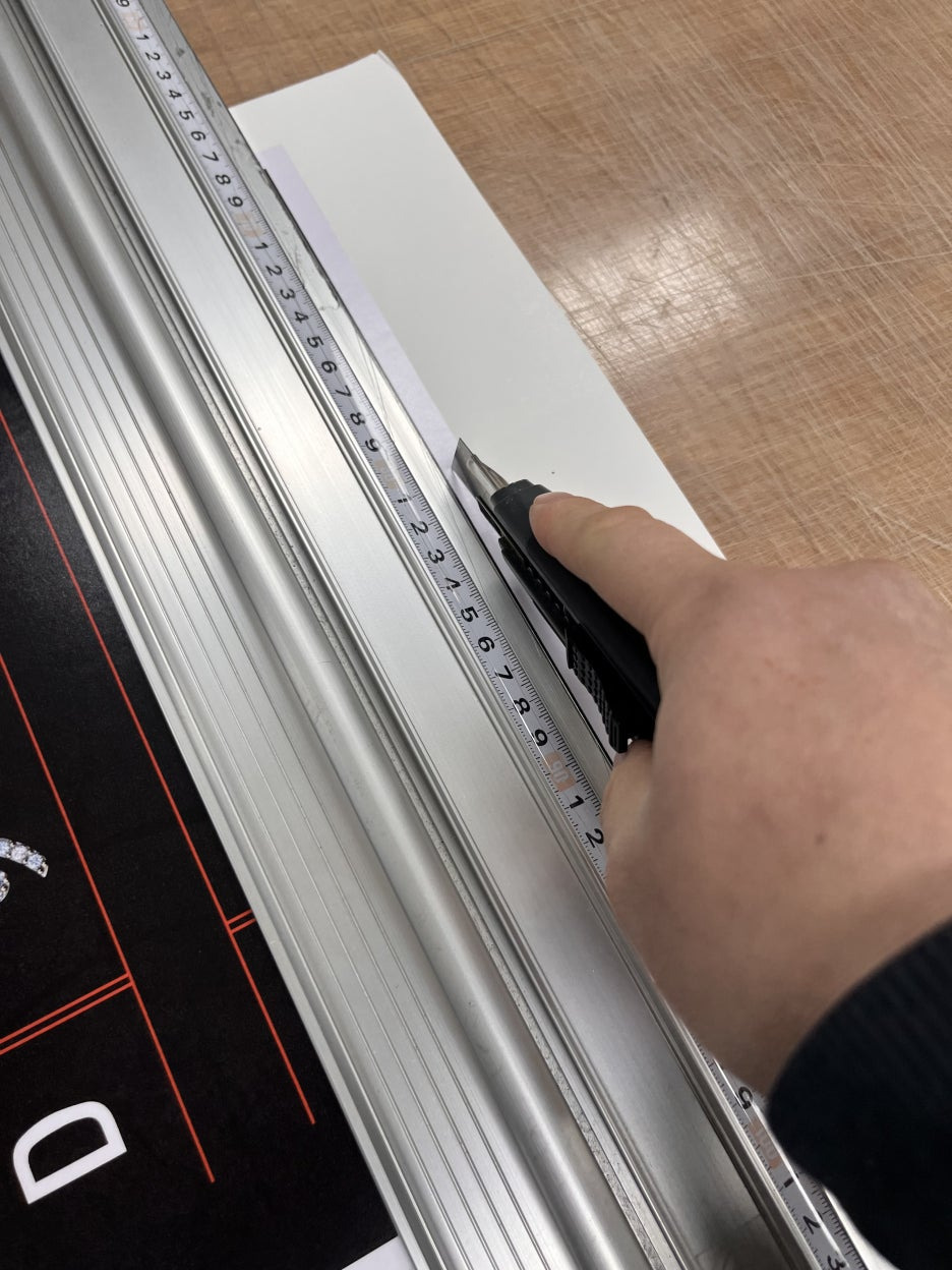 폼보드 제작에서 인쇄 다음으로 차이가 크게 나는 게 **재단(커팅)**이에요.